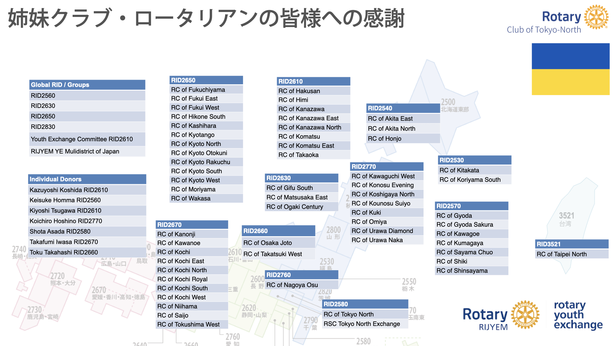 姉妹クラブ・関係団体への感謝